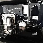 Sie verfügen über eine komplette Küche mit einem Wasserkocher, einem Kühlschrank und Küchenutensilien.